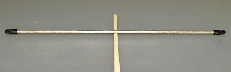 安全キャップを抜いて、位置決めチューブ2個(あるいは1個)をぼうにかぶせ、中心近くに置く。