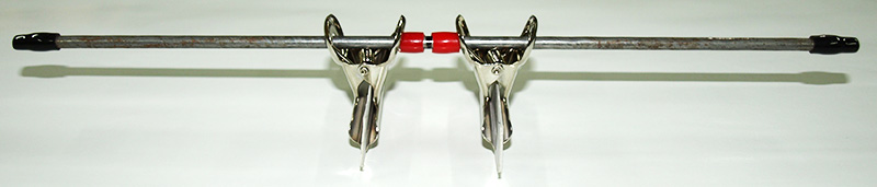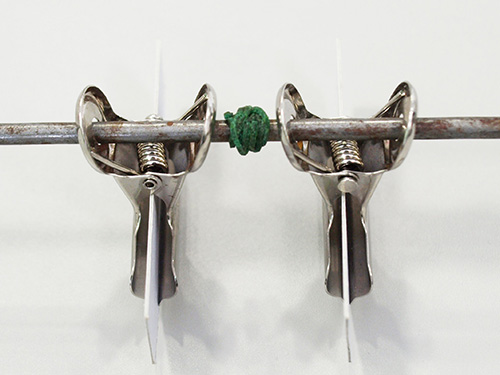 ぼうの両側から目玉クリップをさし込む。