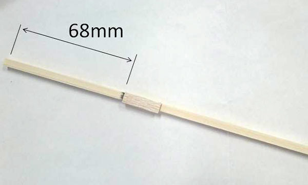 角棒の先端から68mmのところにバルサチップをボンドでつける