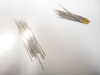 縫い針(ピカピカしているもの)を多数本(写真での例では、約45本です)用意します。