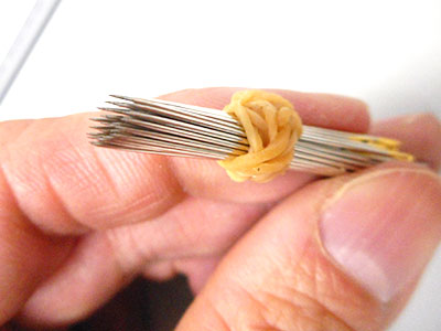 尖った方を揃えて、輪ゴム等で束ねます。