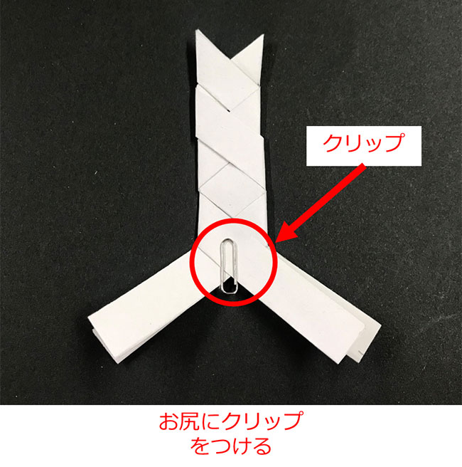 図 12 クリップをつける場所図14のようにクリップを付けて、お尻の部分を固定します。これで指アユは完成です。