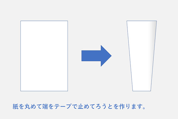 砂を入れ終わったら、ろうとをまっすぐ上に引き上げて砂山を作ります。