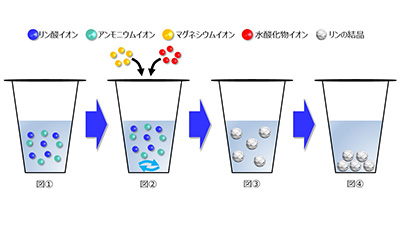 人間のおしっこ(以下、尿)には、体から排出されたリン(リン酸イオン)が豊富に含まれています。このリンを尿から回収し、回収したリンを例えば肥料として利用すれば、国内でのリンの再利用に繋がっていきます。しかし、リン酸イオンは極めて小さな物質であり、そのまま回収することは困難です。一方で、リンは特定の条件下で、大きな結晶を形成します。ここでは、リンを結晶化させ、尿からリンを回収する実験について紹介します。