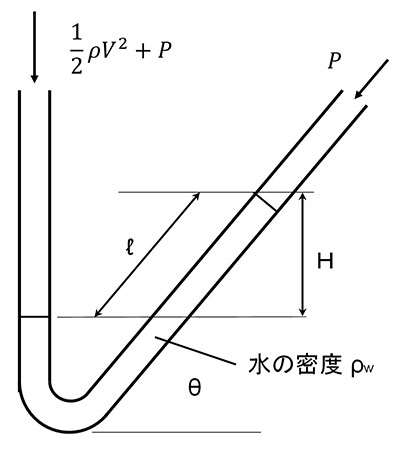 ドライヤーの風をストローの端面に当てるとそこに風圧が加わります。その風圧により液面が押し上げられます。液面の上昇と風圧との関係は以下のようになります。