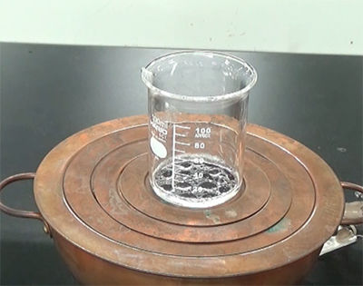 ルーペで観察しながら結晶の融点を測定し、純度を確認します(アセチルサリチル酸の融点135℃)。